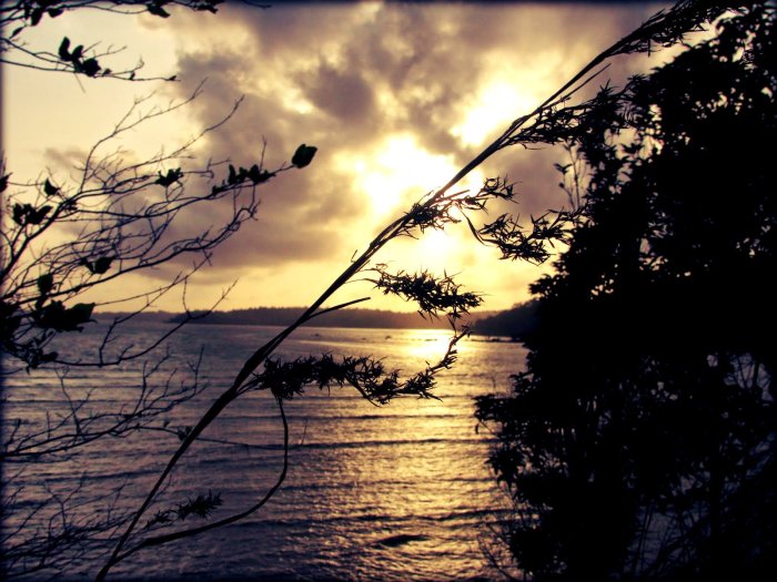 For long, we waited for the sun. The regular sunset time was falling on us, but the sun was not to be found. Then it appeared slowly, out of nowhere. Those faint clouds couldn’t have hidden the sun without us noticing it for so long. Lines of orange broke the monotony of the clouds, the sky. We weren’t quick enough for it. Before we could begin to take it in, it was gone again. But the inevitability of time, end of a day did not wait for the missing sun, the sun which had to set. The clouds were cast in a darker light, the trees on Rutland a mass of black. The clouds began to gather together. Into a circle they had drawn for themselves. They gathered together, leaving the sky to look desolate, naked.