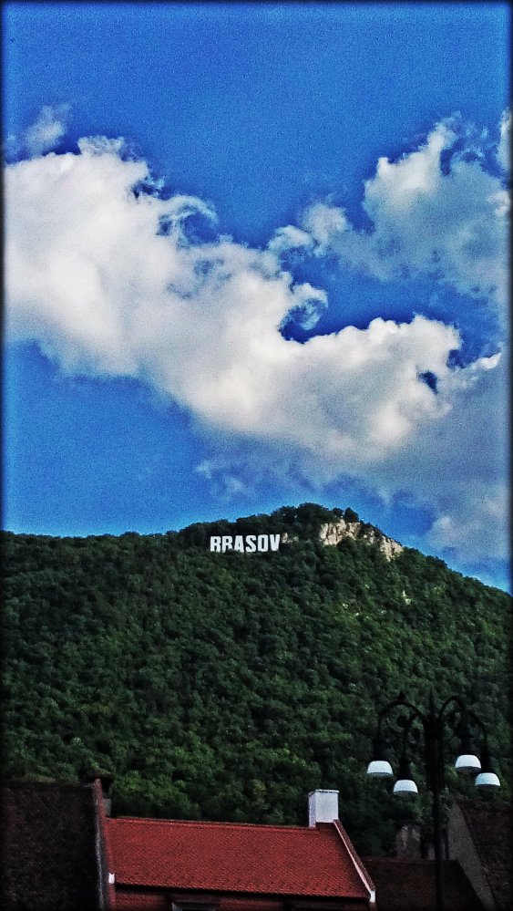 Then we pass the mountains overlooking the city on which is a large sign for Brasov. I feel full at the sight of it. He wrote, When passing by the Hollywood-style sign of this city’s name, Brasov, I would come to a halt and look up, and Tâmpa mountain, which overlooked the city, would dilate with the darkness of a summer night, distinctively dark against the white light gleaming at its top, where the six letters – BRASOV – stood with panache. The letters were sometimes in haze, like theatrical fog on stage, and sometimes in helpless clarity, caught stark naked in the spotlight below and the moonlight above their heads. I’m in Romania, at the sight of the sign, I would say to myself again. I know what he means. I’m in Romania, my mind’s voice speaks in delirium.