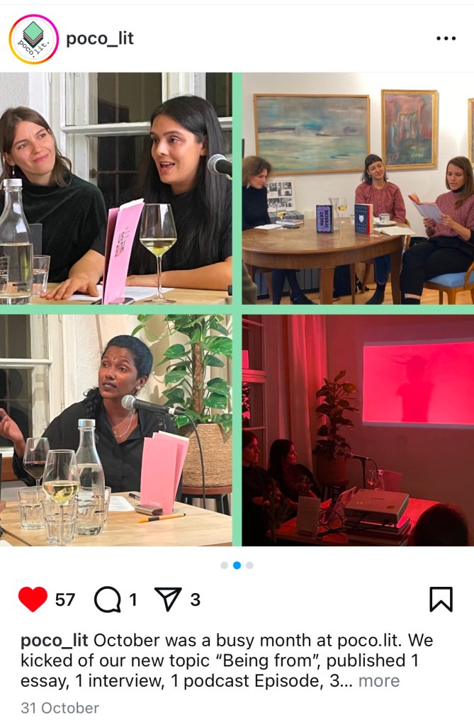 ☁️ 11.10.2024, Belonging, Barrio Berlin Festival: poco.lit & Hopscotch Bookstore Berlin. A review of the event can be read here.